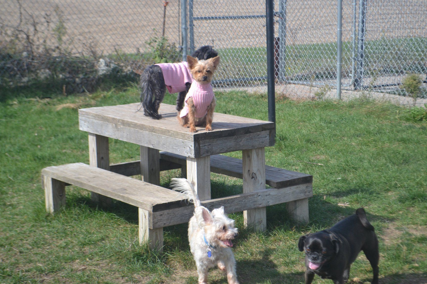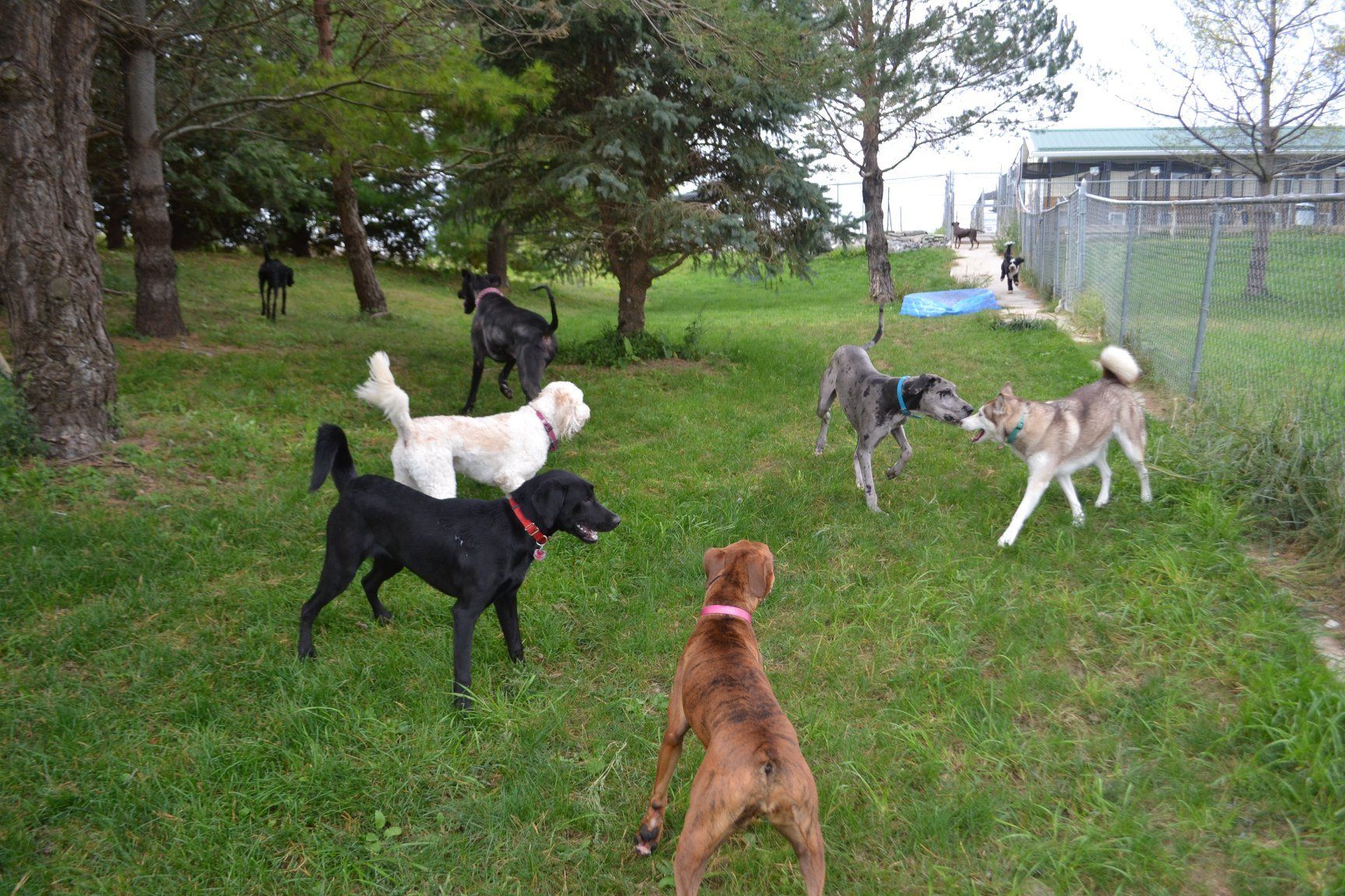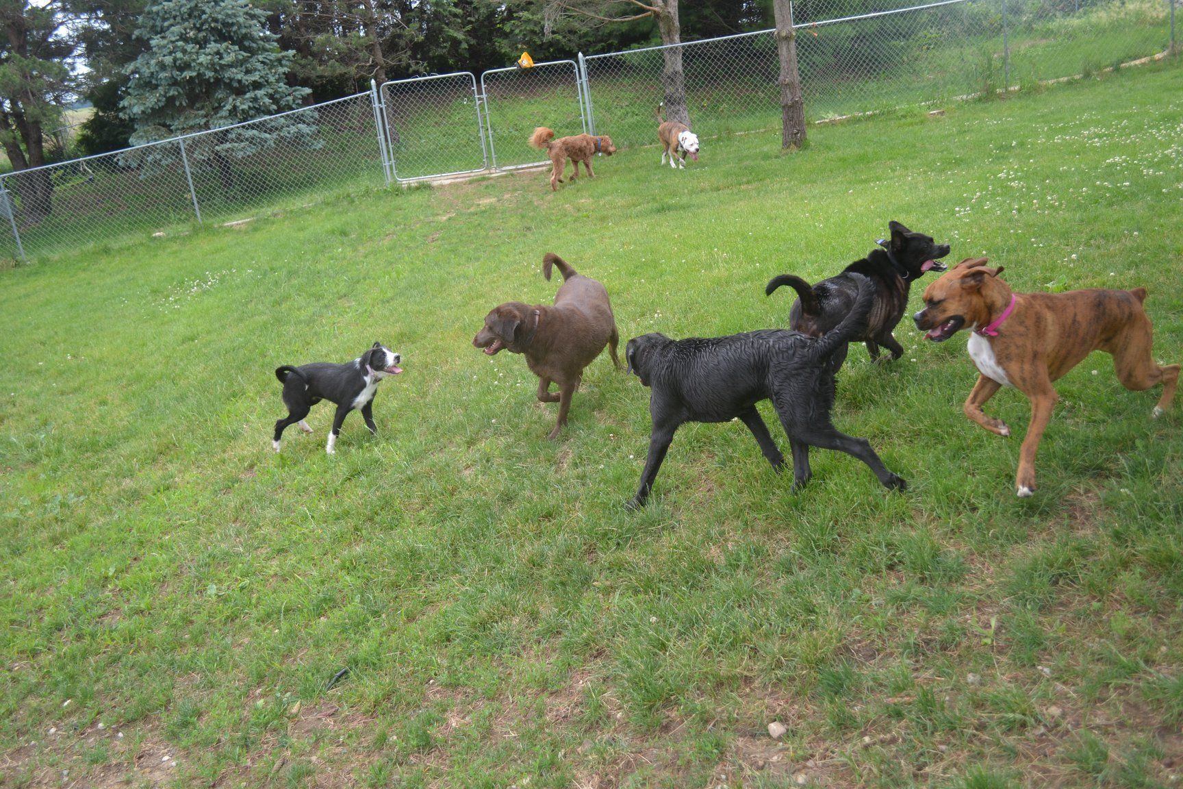 - The duration of playtime varies daily depending on various factors including weather conditions and the amount of dogs we have boarding with us at the time.